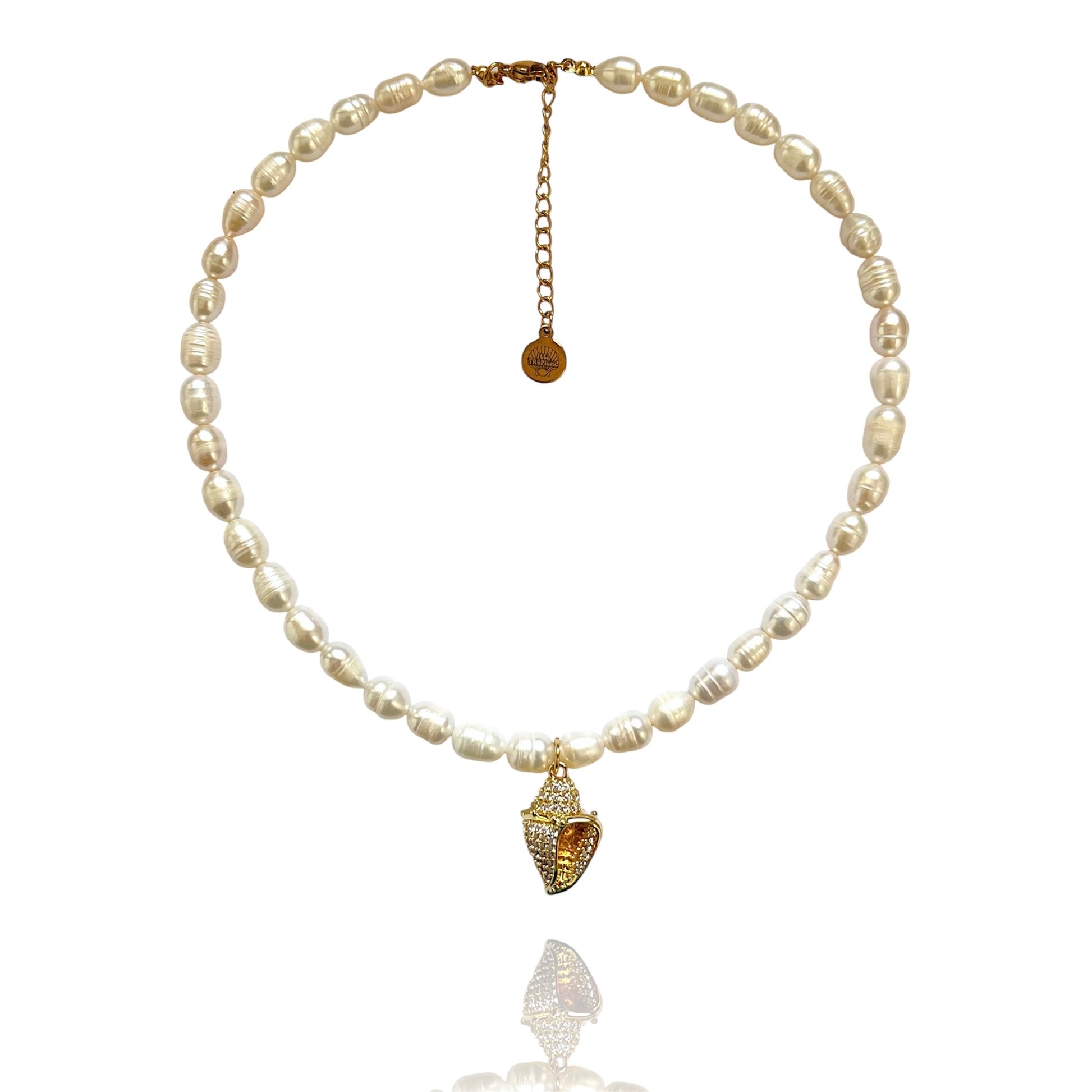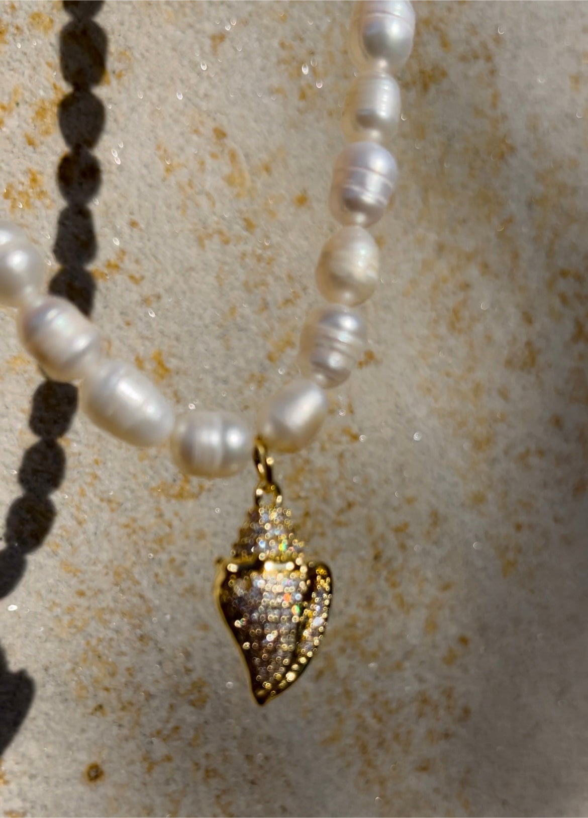 ¿Perlas? Sí. ¿Brillo? También. PEARLS BAY es ese collar que combina lo clásico con lo moderno. Perlas de agua dulce y una caracola cubierta de circonitas, todo con un toque de sofisticación que no pasa desapercibido.